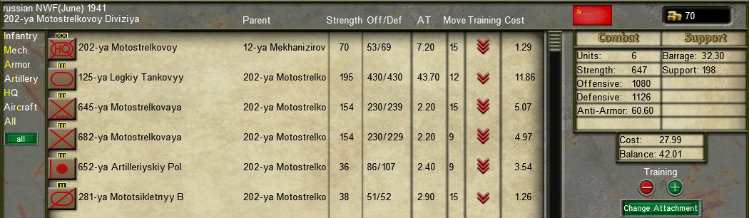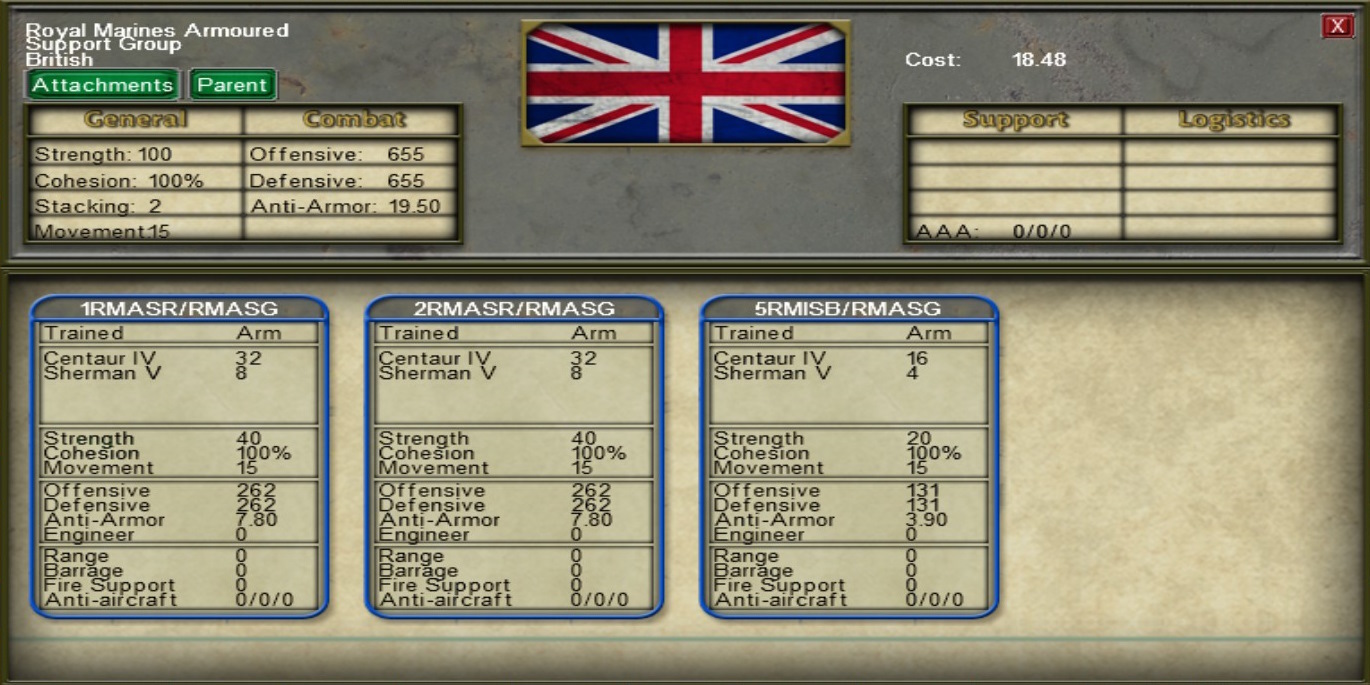 • Removed SMG Company from Armored Infantry battalions of tank brigades. SMG Companies do not enter their official TOE until January 1943.