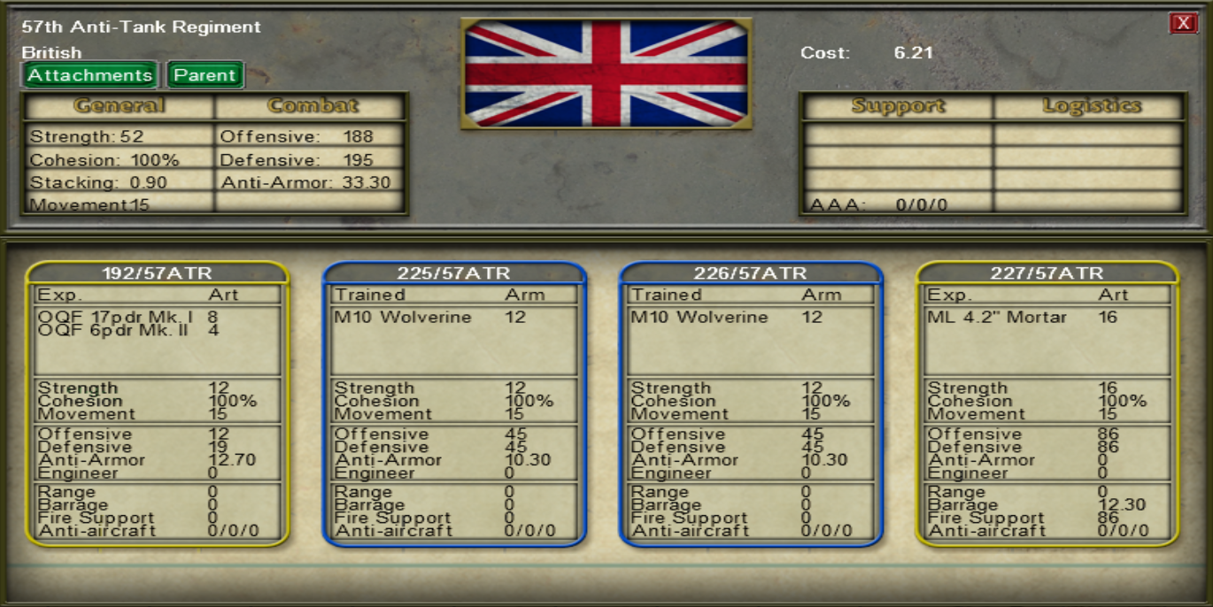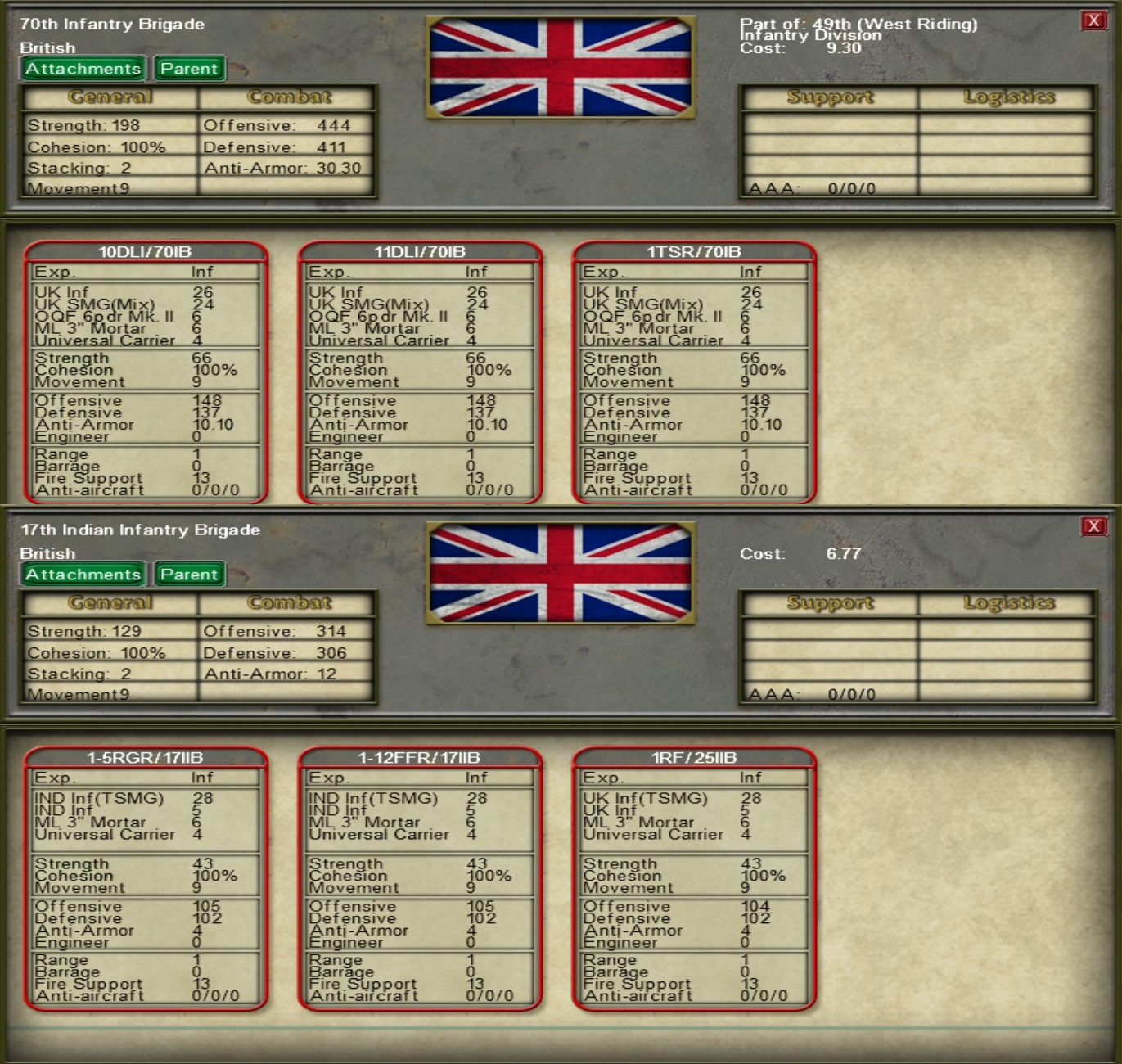 • Added 37mm AA gun section (4 guns) to Tank Brigade HQs.