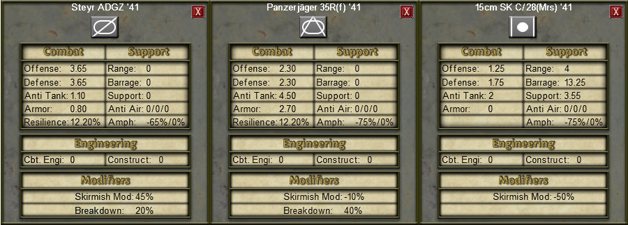 • Added Panzerjager 35(R), a dubiously useful tank destroyer built on a modified French R-35 chassis. Relatively well armed, but slow and suffering from appallingly poor mechanical reliability during its combat debut in Operation Barbarossa.