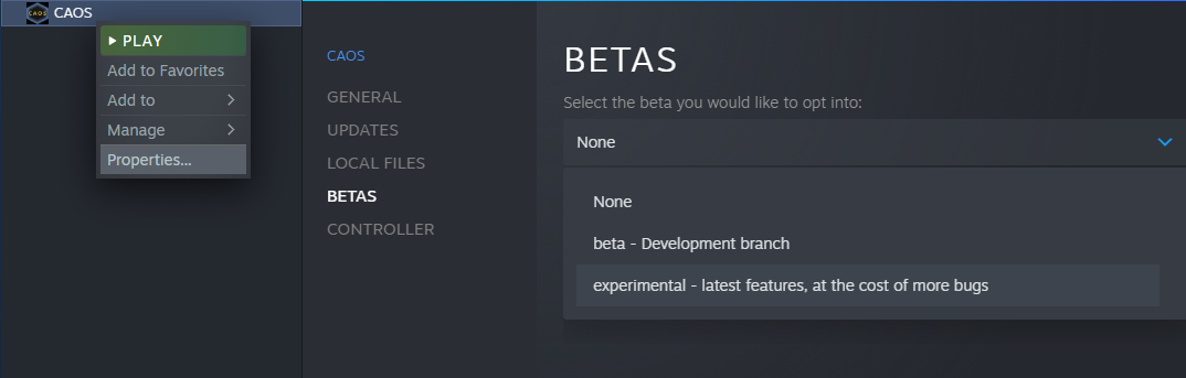 See the picture below for information on how to opt-in to the Experimental build if you’re interested in playing new updates early.