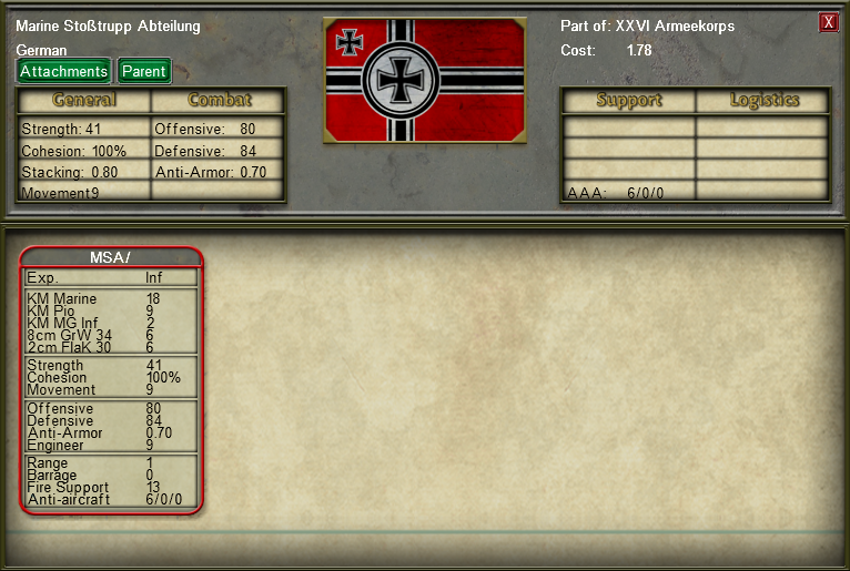 • Separated German armored recon battalions into detachable Mot/Support and Armored Car companies, instead of trying to shoehorn the entire organization into a single attachment.