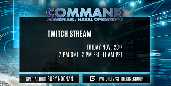 The legendary Rory Noonan will be streaming Command: Modern Air / Naval Operations on our official Twitch Channel, at 7 pm GMT / 2 PM EST / 11 AM PST!