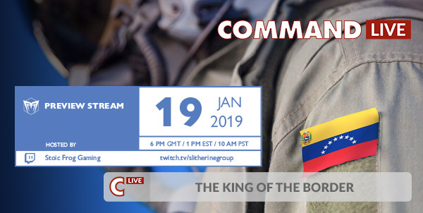 Join us on Saturday, January 19th on our official Twitch Channel and watch Stoic Frog Gaming playing the latest Command: LIVE episode "The King of the Border"!