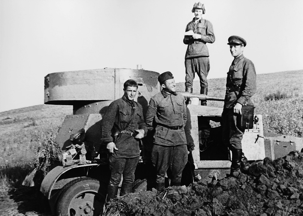 BA-10 armored car commanded by P.Moroz (first from the right), 9th Mechanized Brigade.