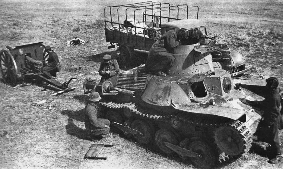 During that attack Soviet troops (11th Tank Brigade and 7th Armored Brigade combined) have lost 37 armored cars out of 59 engaged that day (in other words, 2/3 of armored cars were either disabled or destroyed). There Soviet armored car crews have learned a deadly specifics of BA-6 and BA-10 designs: there was a fuel tank located in the upper part of the hull, above the heads of a driver and machinegunner. When penetrated and ignited, these fuel tanks poured liters of burning fuel, with a very little chance for those two crew members to survive the deadly napalm flow.