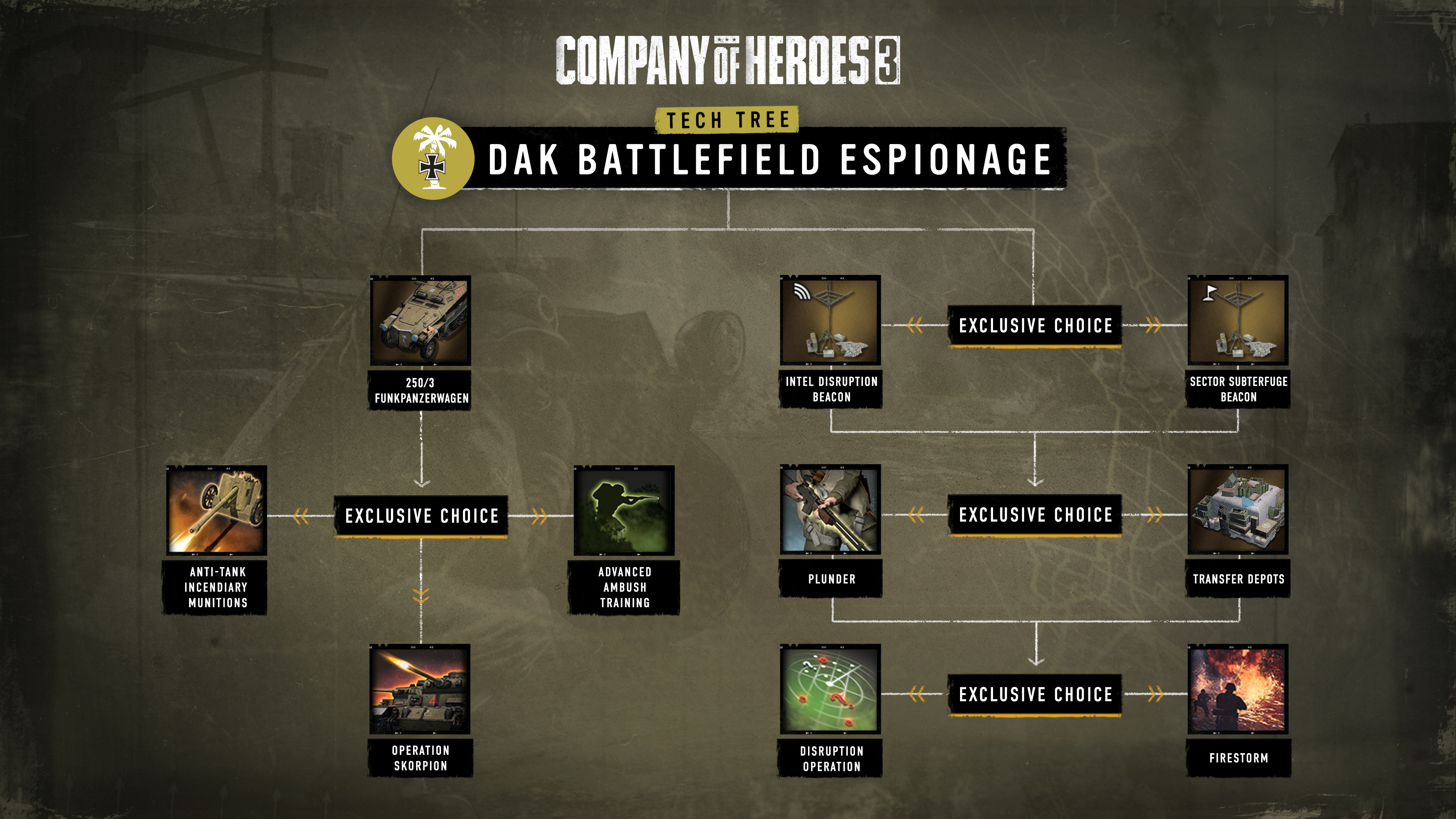 The Battlefield Espionage Battlegroup allows the Deutsches Afrikakorps to use stealth, subterfuge, and underhanded tactics to wreak havoc on the enemy, and rout them from the field.