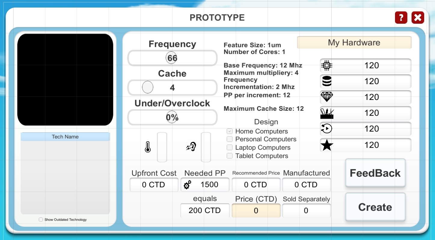 And here is a hardware design screen, the CPU. You can see the new heat metric and the other options. In the future you will be able to set the cache, overclocking and frequency separately according to the Roadmap of the game.