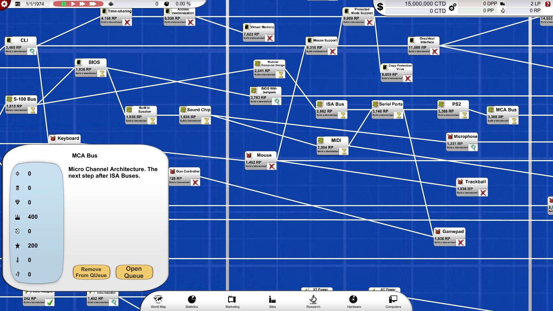 Nope, unfortunately, that's still not the big update I wanted to post. I had a good progress in the last weeks, but still, I'm not done with it. Basically, the tech tree works fine, but I had to re-adjust hardware property points and further polish the hardware design system. I won't lie, it is hard - but I really hope that the result will be a much better, more interesting game.