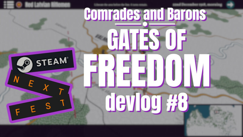 A new devlog about Comrades and Barons: Gates of Freedom: https://www.youtube.com/watch?v=vHBoz0-GKFw