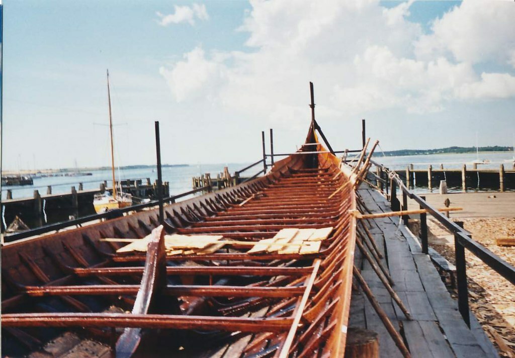 A reconstructed Viking longship under construction at the shipyard in Roskilde in Denmark (2003)