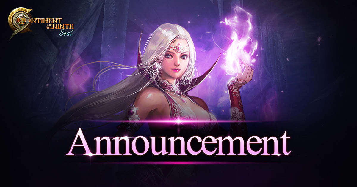 We would like to inform everyone that Continent of the ninth seal will perform its server maintenance. This is for new updates, changes, server refresh, etc.
