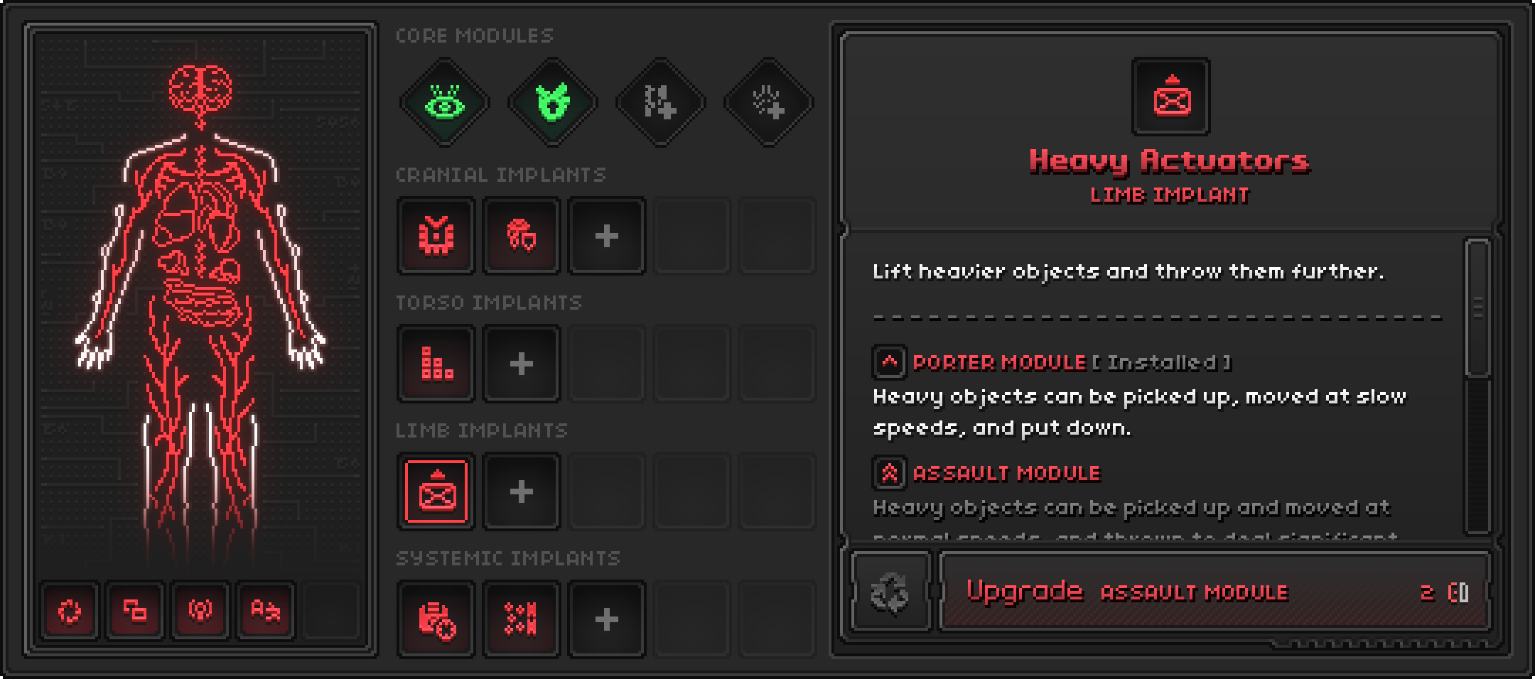 After a short hiatus, I bring you a new development update we're taking a look at how Core Decay approaches cybernetics, as both a gameplay feature and crucial part of the narrative and player identity!