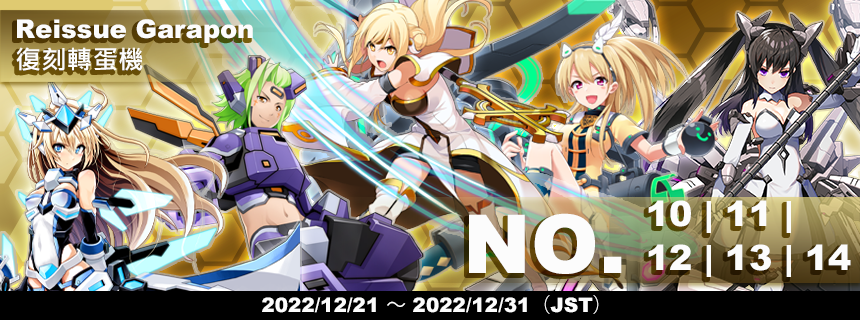2022 Garapon will have a rerun in the Shop for a limited time! The first phase will feature Garapon 10~14, and the second phase 15~19. Theres no better chance to roll for any characters you might have missed! Click on each Garapon to see its lineup.