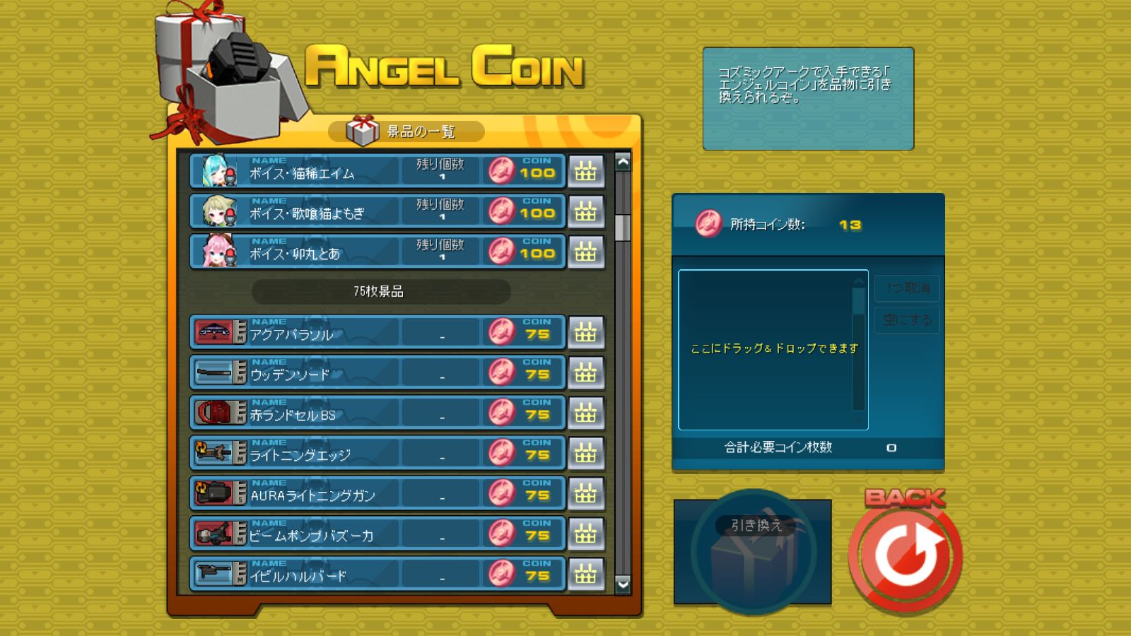 ①Press the F11 Key to open Quick Access. ②Click on Central Area (Day), then sekect the Coin Exchange and hit Go. ③After navigating to the Coin Exchange, speak to the NPC Elme Sary by right clicking. ④Search through the list for the items that you want and click Redeem in order to receive the prize.
