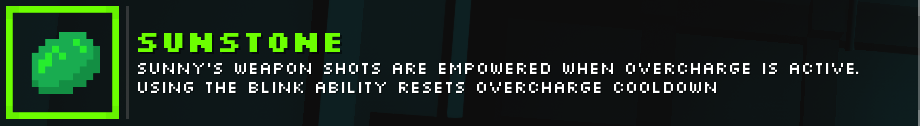 Solar Cannon (Luna's Hero Augment) (NEW)[/p][p]The Top Mounted AutoCannon now has two barrels an fires twice as fast.[/p][p]Top Mounted Cannon shots are empowered while Overcharging is active