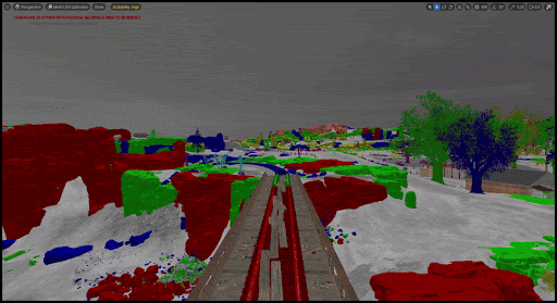 Visualisation of the changing LODs of the train tracks and nature around them.