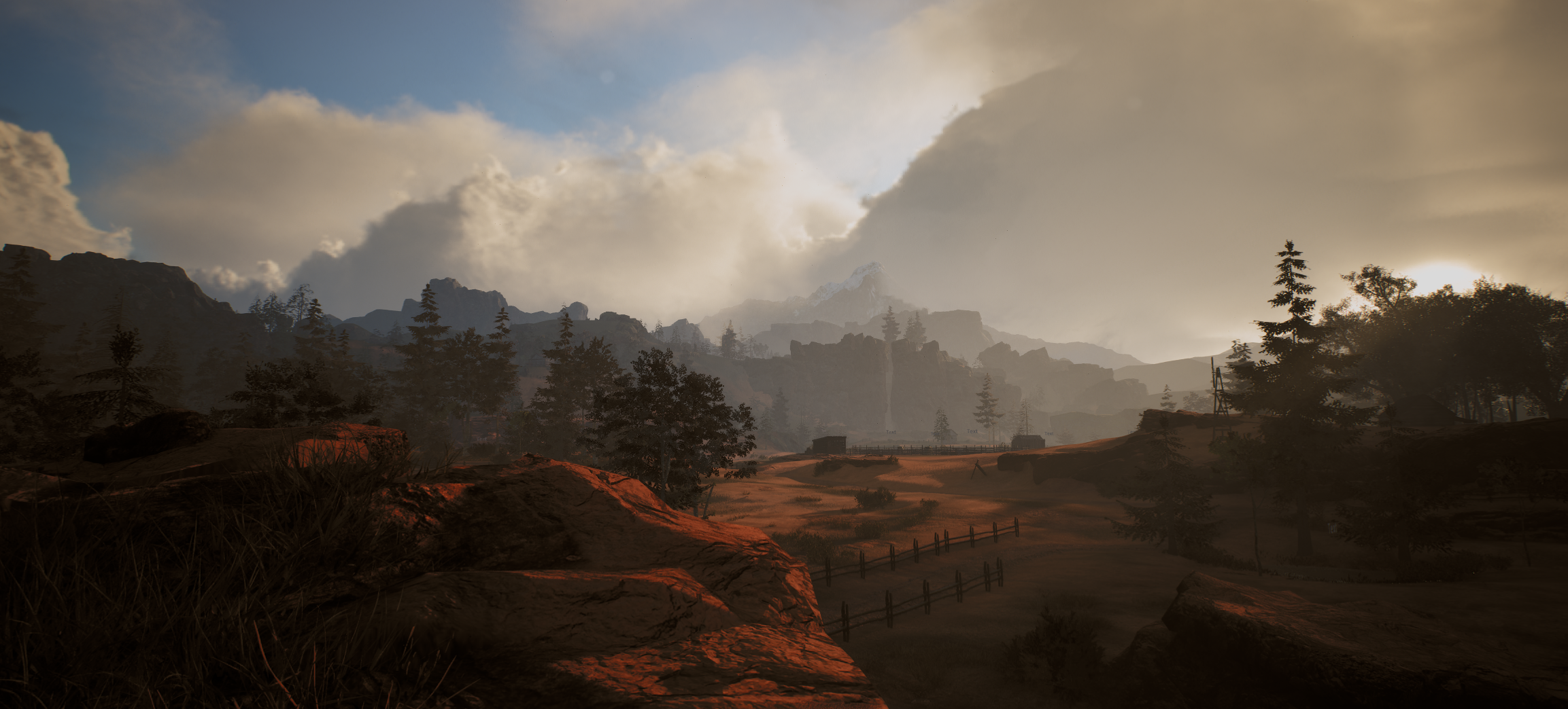 We use fully dynamic lighting, which looks great but hits performance hard. Most games bake lighting (pre-render it), but we wanted a real-time sun, beautiful mornings, and picturesque sunsets.