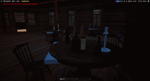 Visualisation of the collisions of different objects at the Saloon in town. The bottles, for example, have spherical collisions.