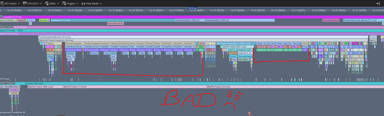 Our main investigation tool for diving deep into optimization issues – the Unreal Insights graph.