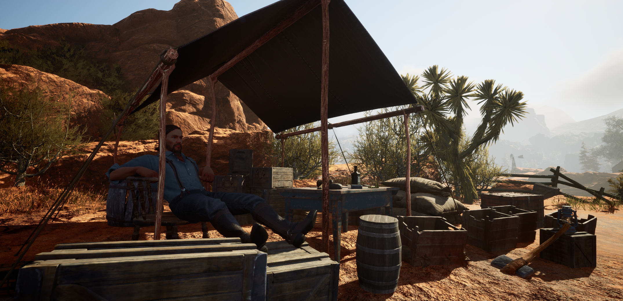 Human enemy combat, well… it certainly is there… Just kidding, we know how much everyone was asking for some cowboy shootin’, and we listened. For now, the mechanic itself is quite clunky as a whole, but it’s the one of the areas of “Cowboy’s” development we’re the most focused on now.