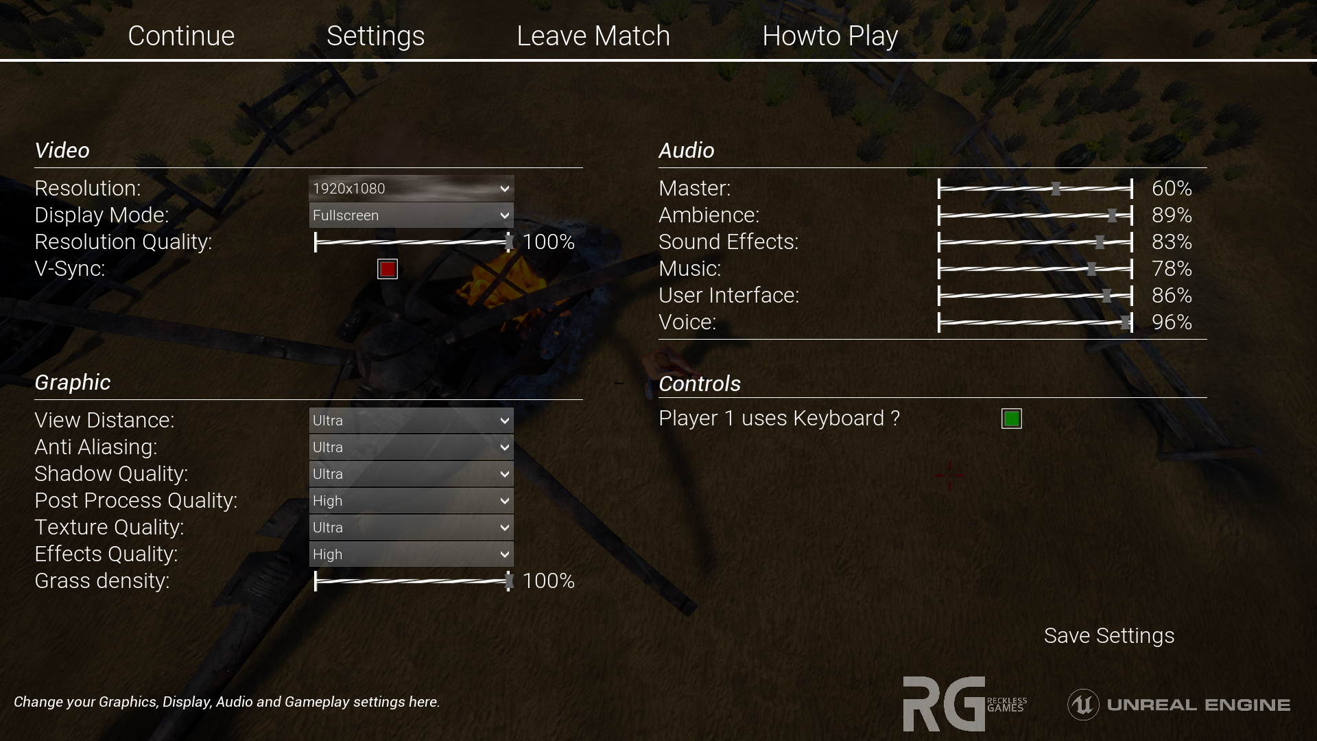 The result of all those changemes is an intuitive usage of the main menu. The same changes have been made to the ingame menu. This screenshot shows the settings sub-menu ingame: