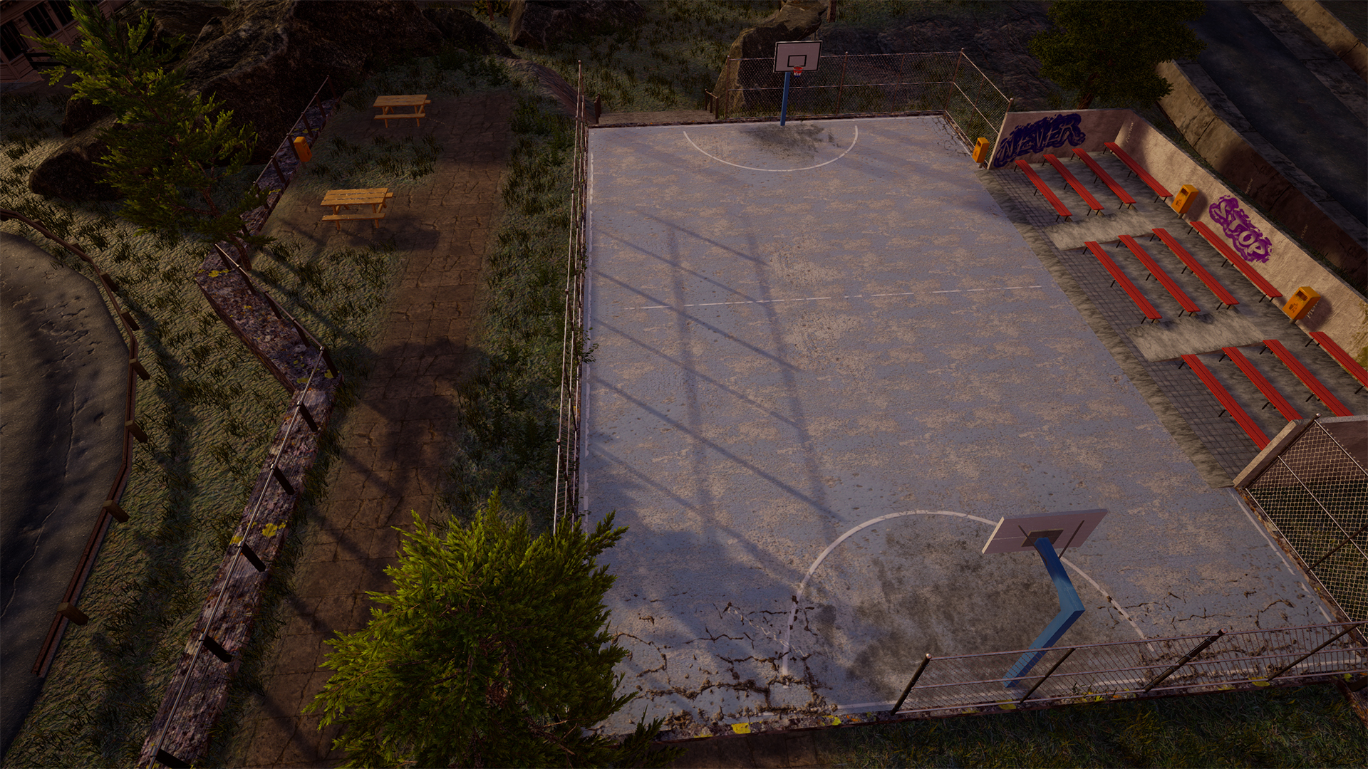 We are currently working to get the new co-op map ready for you. A rough estimation for the release of it will be around 2 to 3 weeks. The setting of the new map is a huge city together with a park. It is called UrbanSuburbs which takes place between the BloodyIsland and the BalsamRetirements map. As promised, here are some screenshots of the park area: