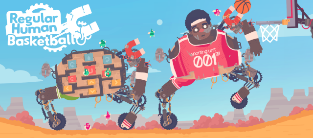 Regular Human Basketball is the multiplayer party-starter that has your team wrestling to control your giant mechanical death machine. Yelling orders, flipping switches, and shootin' hoops in a post-apocalyptic basketball showdown!