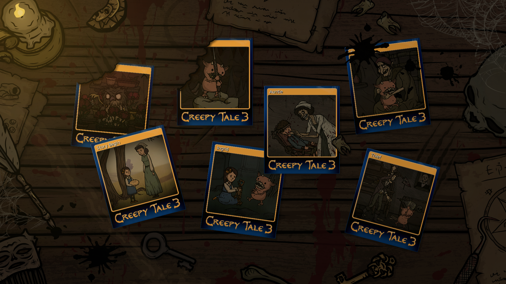 Hi there! Great news! Creepy Tale 3 gets trading cards! Also, we prepared nice badges, profile backgrounds and smiles for chat!