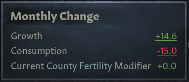 Monthly Fertility change is a bit more complex than our usual systems. We adjust both Growth and Decline to better simulate how nomadic herds would reduce local pastureland, with the overall change often settling at some lower number (though this depends on your domain size and some other factors).