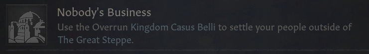 The Steppe by Steppe achievement now takes into account the expanded areas of the Steppe through the Expand the Steppe decision