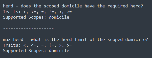 Every Domicile has Current Herd and Max Herd values, accessible by the following triggers: