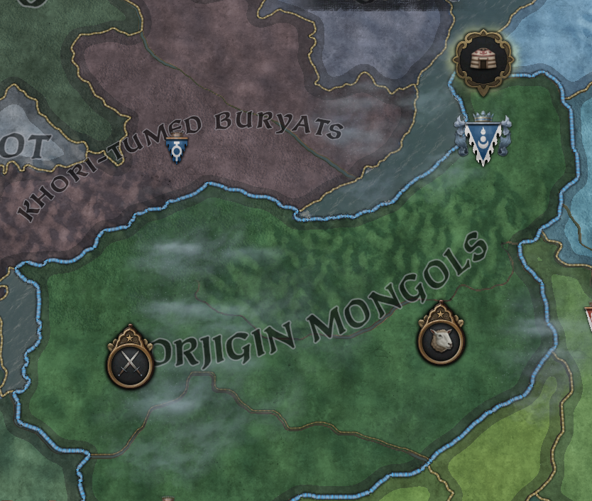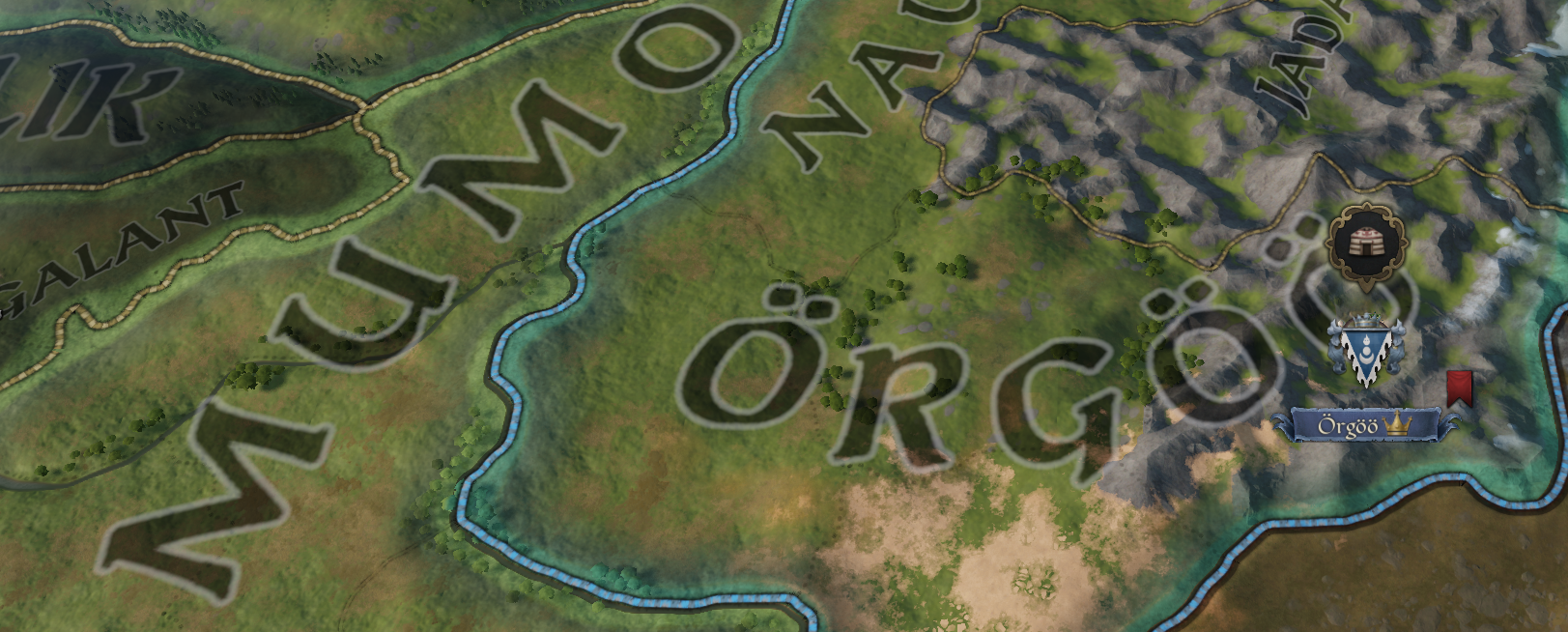 To reflect the importance of your people, the names on a Nomadic map are also different from our regular naming conventions. It is the Borjigin Mongols that move across the map, not the Duchy of Örgöö.