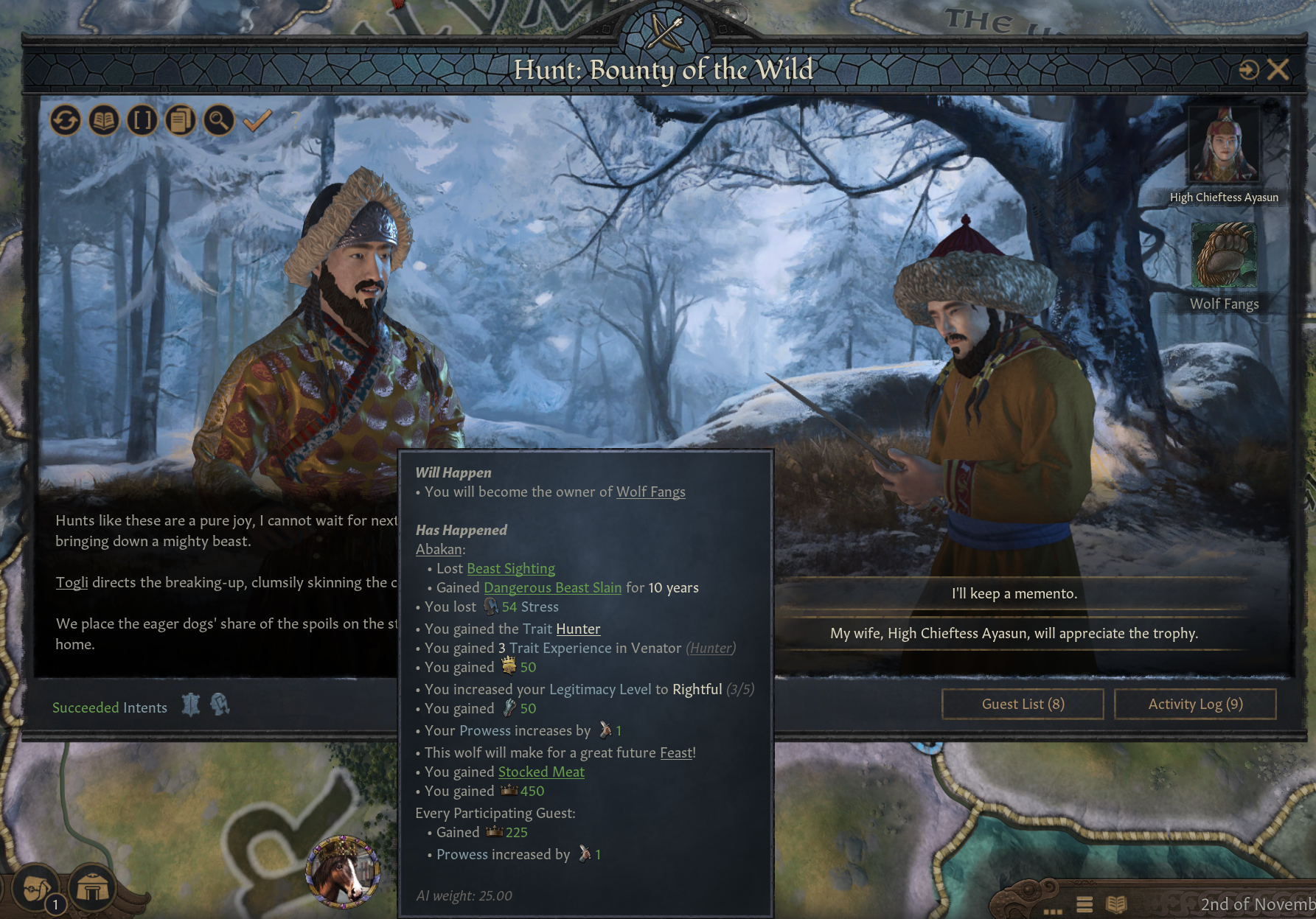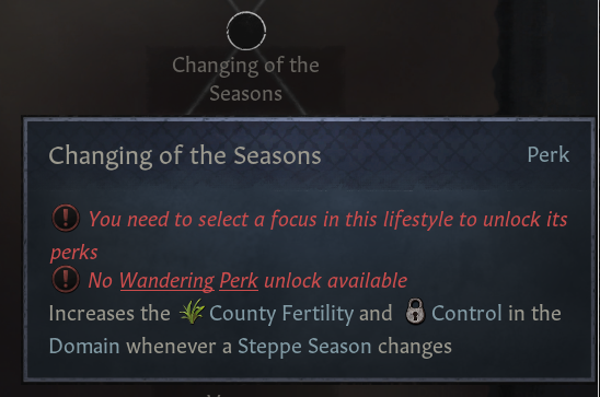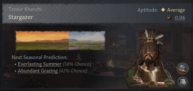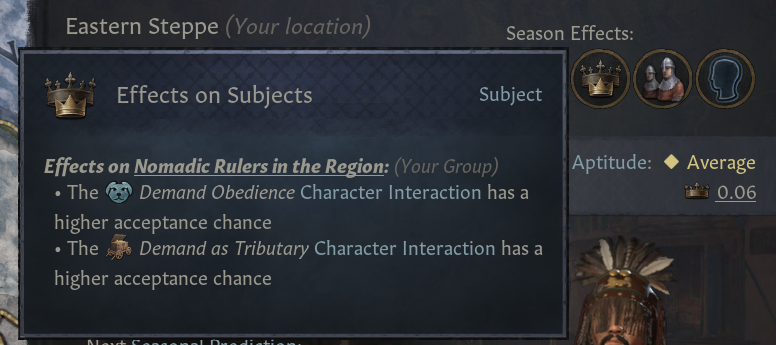 That’s not the only effect they have though, as different seasons also change the general mood within Nomads. If a ruler extorts their vassals for Herd during an Abundant Grazing season, then they will receive more than usual, and a Severe Drought will promote characters to migrate even more than usual.