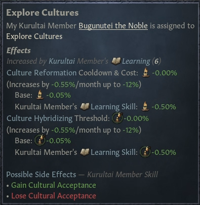 If you are more interested in hybridizing your culture or changing something around, you should look to the final new task for the Kurultai. This will mesh well with the two new Court Position Tasks we have added to improve cultural acceptance in your or tributary lands.