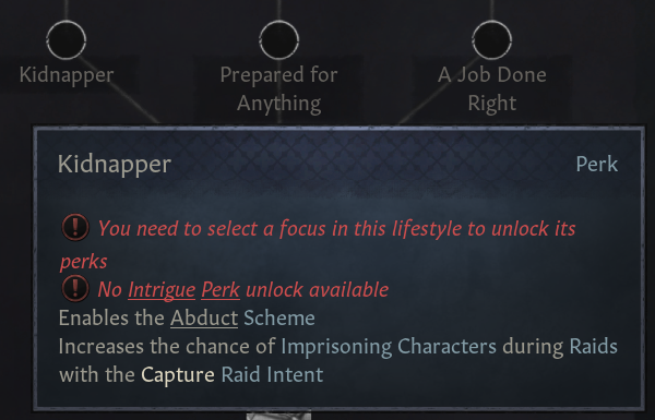 A Raid Intent allows to set a desired outcome of the raiding: you may want to raid to capture interesting characters, steal your neighbors' cattle, or simply burn their property to the ground.