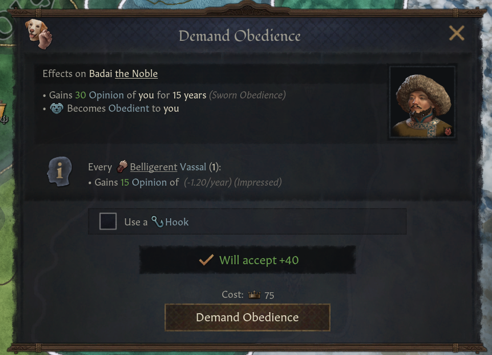 We have already talked about Obedience in our first Nomadic Dev Diary, but as a refresher Obedience is a binary state for subjects and courtiers of Nomadic rulers.