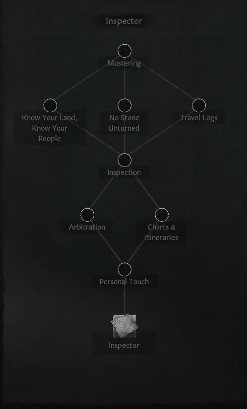 The final tree of the lifestyle is the Inspector tree, and as you might notice, we will split this into two different sections altogether, rather than simply showing the variations of the perks. This was the one tree that saw a significant rework for landless gameplay due to how the tree was initially structured for landed gameplay.