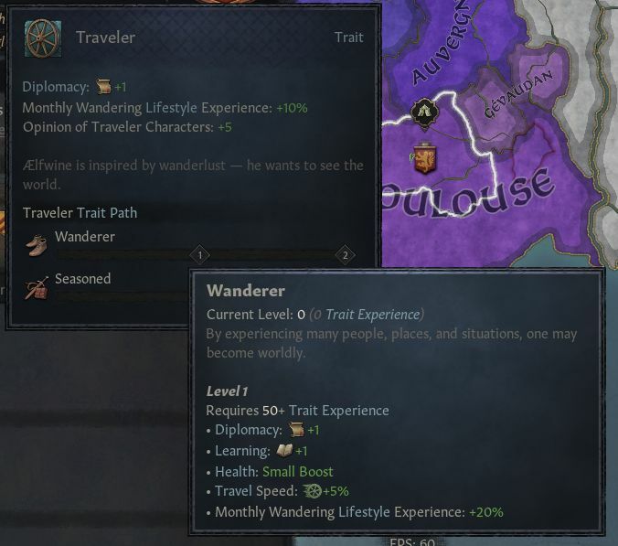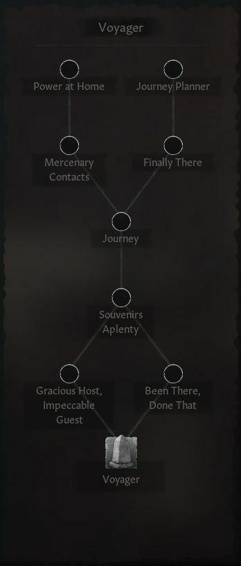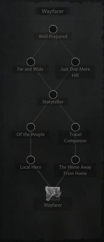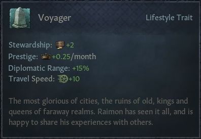 Unlike its Wayfarer equivalent, we wanted this trait to play less into the synergies of the tree but more be a composite of the tree. It bumps up the diplomatic range gain even further and increases your travel speed, giving you access to even more points of interest previously out of range.