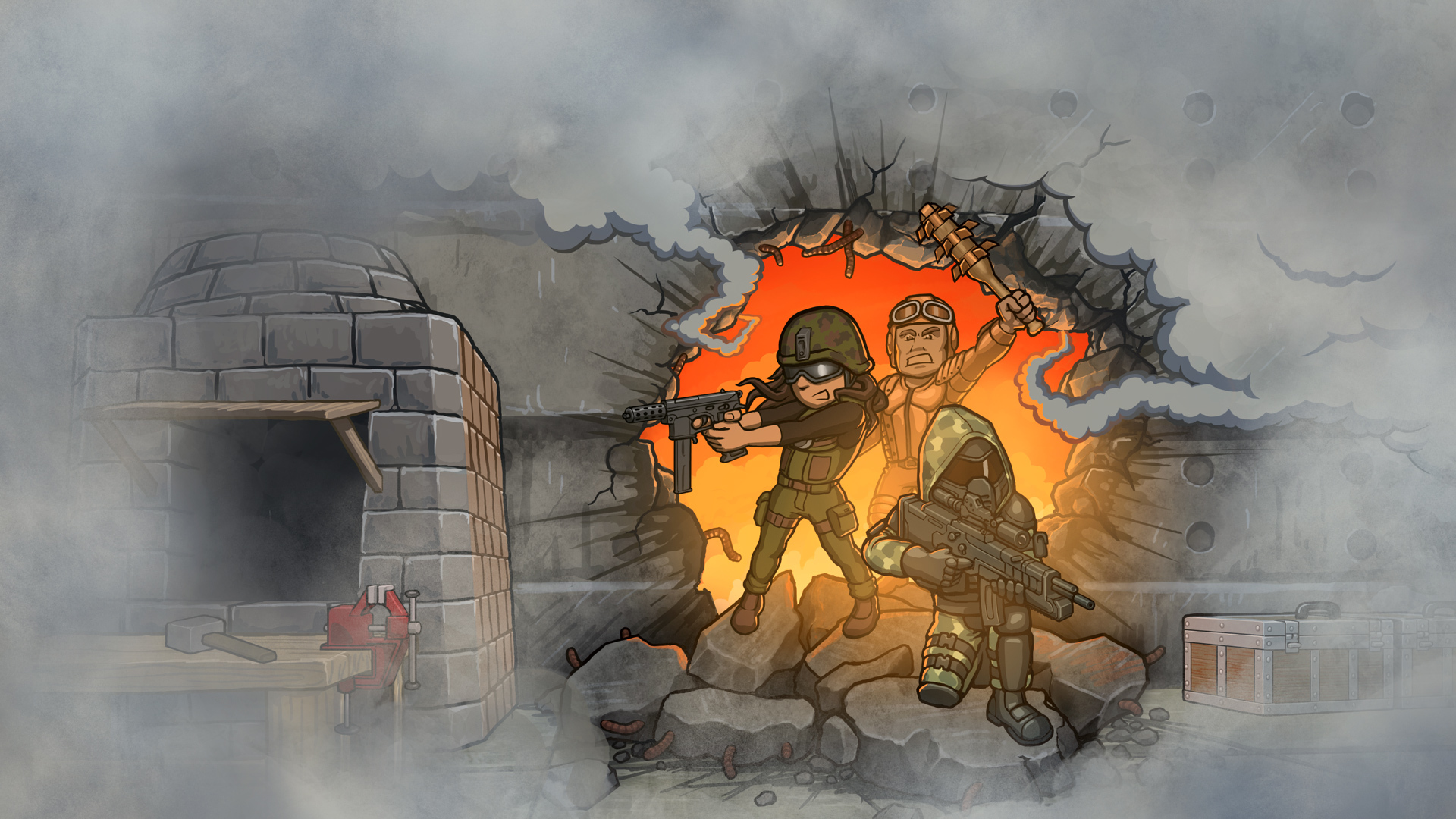 The decorative objects received an update too! There are many more of them now—and they are all in separate groups, 100% non-mandatory so they will not hinder your progress. Just a little extra for those who want it. See the image above for some examples. You will also be pleased to know that we have finally introduced grenade launchers and the crossbow along with several new long-range rifles and other small things! You can build these new grenade launchers and grenades when you reach Tier 3. The crossbow, on the other hand, is available from the very start of the game and you can craft it without using a workbench which makes it a very convenient starter weapon, though not as powerful as firearms. Another small change was a reworking of character faces and bodies. While this change is not a major one it still makes the game look substantially better! We hope you will enjoy this change as well. Most importantly, it lays down the foundation for us to introduce skin tone and hair color changes in the future updates as these new sprites are already designed to work with this new system in mind.