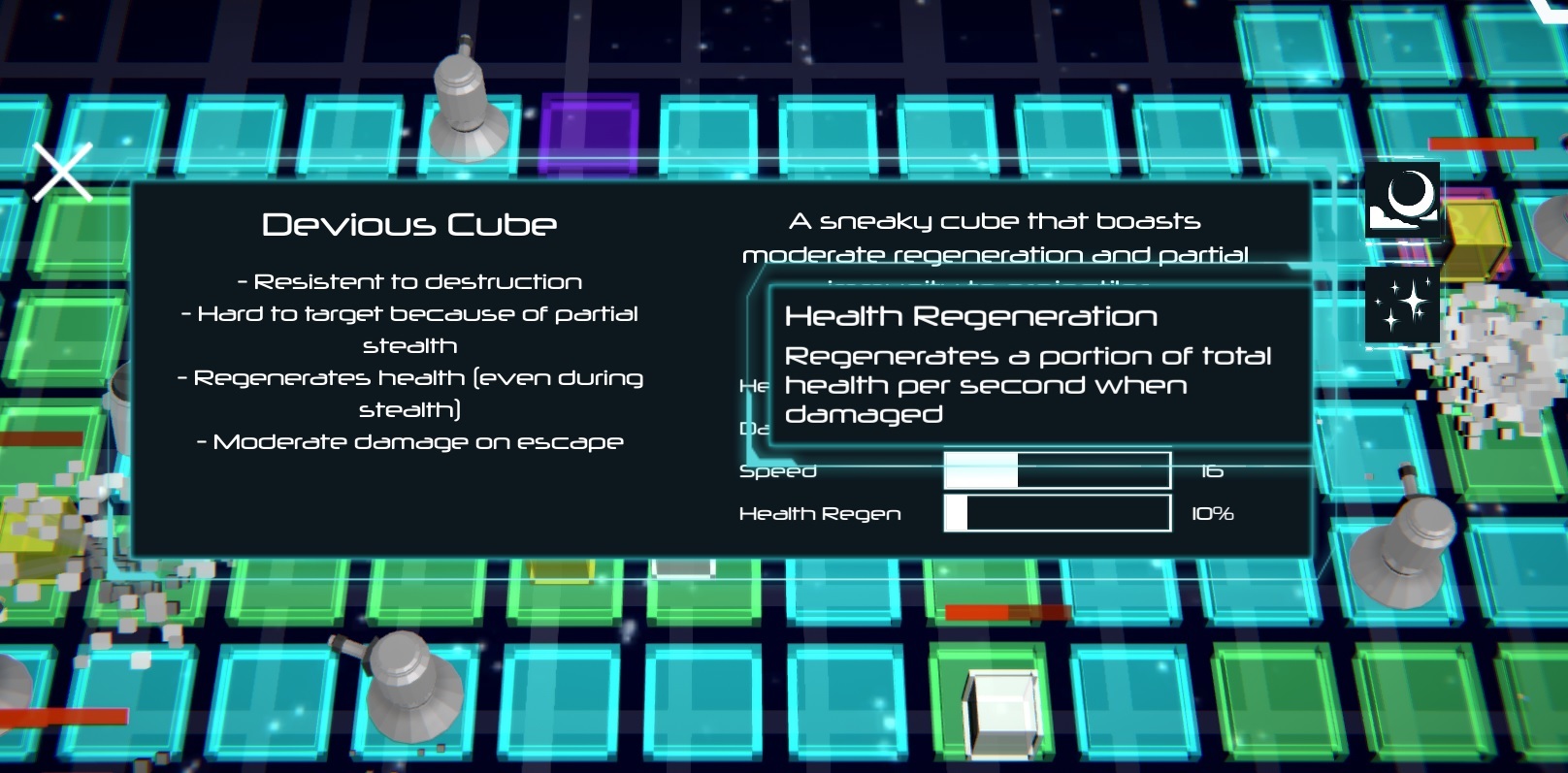 Adjusted 'devious cube' (green), so that it's skills dont have the 'basic enemy' skill. Added in the missing 'health regeneration' skill (as this cube heals slightly over time)