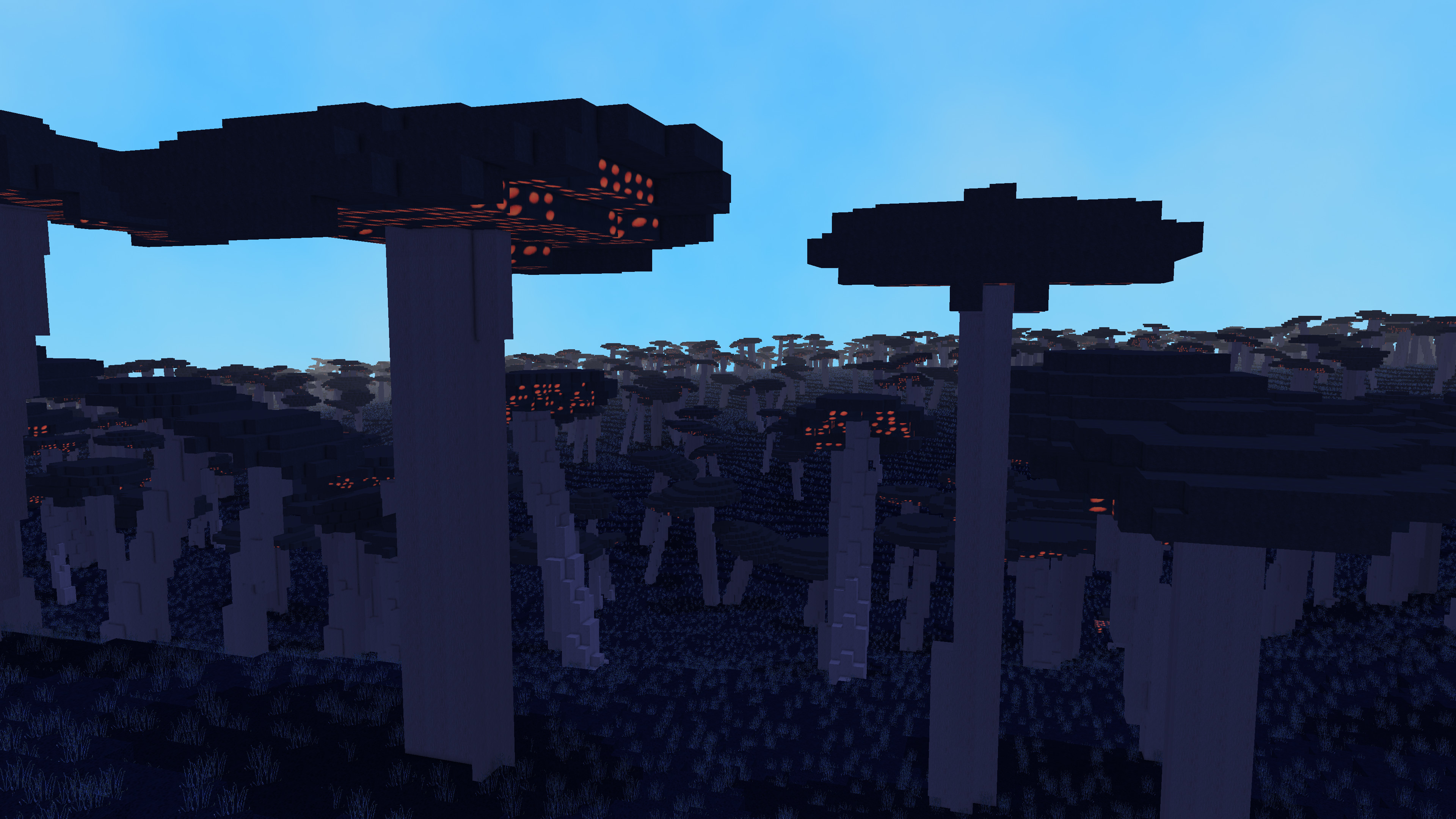 I'd like to add a new planet based on a blue-ish color theme where things glow in the dark, with mushroom biomes and dark forests - and maybe red deserts as a contrast. Every mushroom will be procedurally generated and some will be inhabited, but the latter feature will not be available before procedural generation for things like dungeons is implemented, since I want those mushrooms to have randomly generated rooms and "hallways".