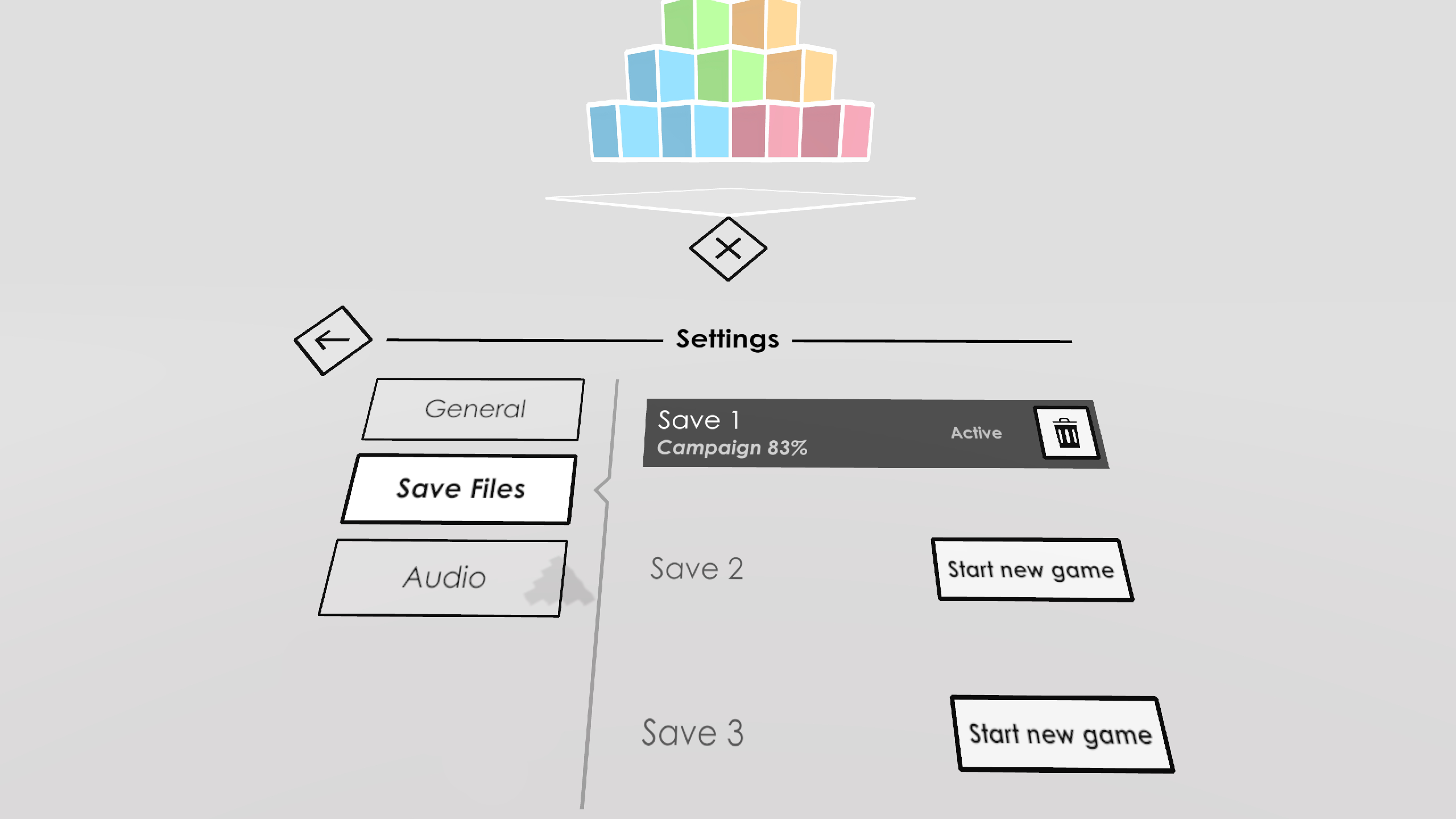 MULTIPLE SAVE FILES Want to show Cubism to a friend or family member, but don't want to clear your progress? You can now switch between three different save files, making it easy to share Cubism with others, or for you to revisit the early levels of the game!