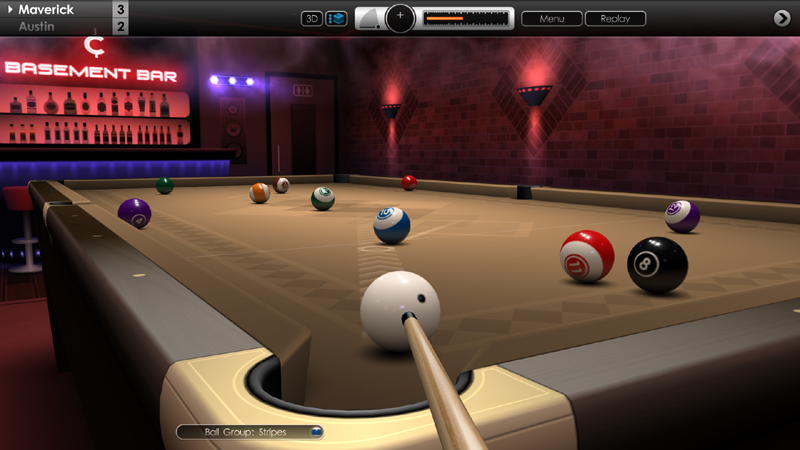 Improved range of elevation for first person camera, to allow you to get down lower on the cue in 3D mode. Use the mouse wheel or gamepad right stick to adjust.
