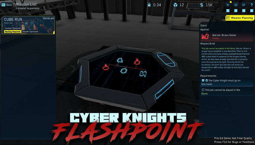 With Update #2, we've added a fully visualized job planner at your merc command HQ. While the demo heists are a bit too simple to make full use of the planner, you can still check out how larger jobs like the Cube Run or Loophole Heist look and the options that you'd have available through your underworld network in the full game.