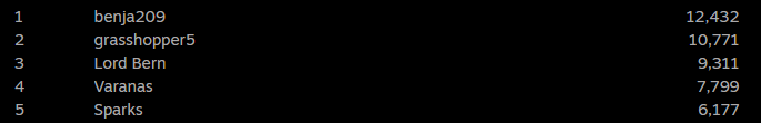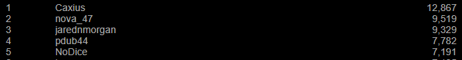 Hello everyone! Hope this year is going well for you so far, it sure is for me. Check out last months leaderboards...