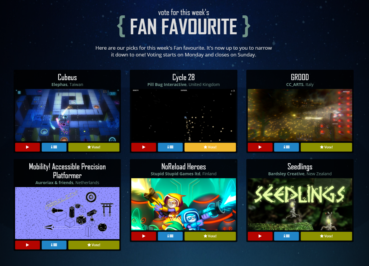 We were up against some fantastic games from around the world, so we are really excited to represent Wales/UK in such a global competition. As one UK game dev commented, we were the only submission that week to provide a gif - and we all know how persuasive a good gif can be! Perhaps this was the difference maker?
