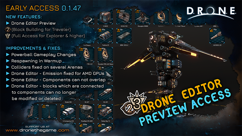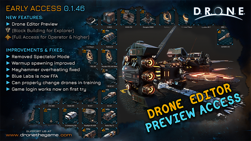 New update brings a bunch of fixes and changes! Also, the drone editor is now fully available for Tier 4 (Operator) and above which means Tier 3 (Explorer) gets access to blocks.