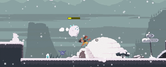 Some child toys can be incredibly useful and can be used at opportune times to vanquish a particularly dangerous enemy. Below, we're being chased by an Ice Bundt, which has a particularly large amount of health. We make haste to the turtle in order to escape via a small frozen water crossing, but the Ice Bundt is able to fly!