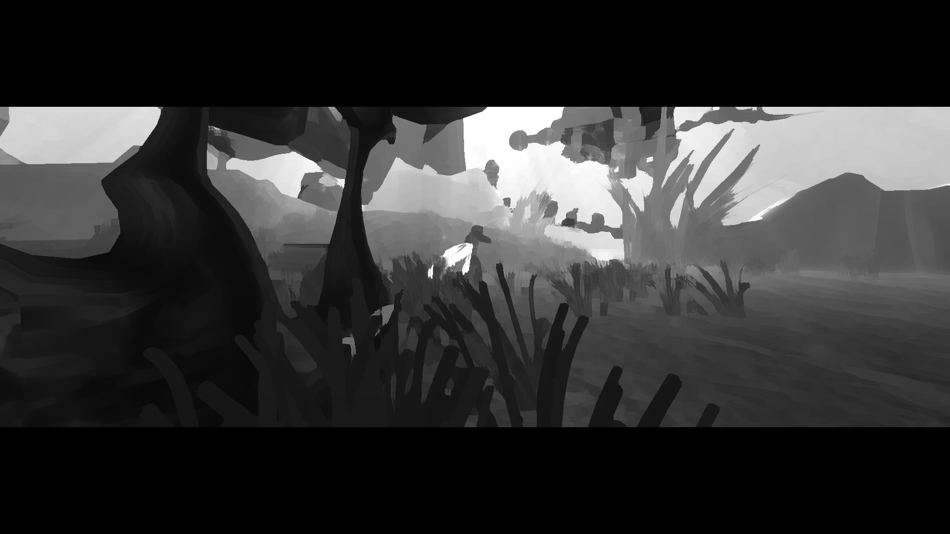 Since it didn't make sens to me to just have part of the abstract story in the demo, I decided to take one scene and make it possible for you to walk around in it to get a feeling of the general ambiance of the game/interactive experience.