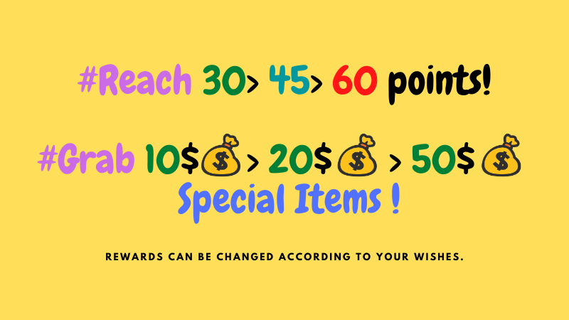 + When you reach 30 > 45 > 60 points, post the screenshot on steam.